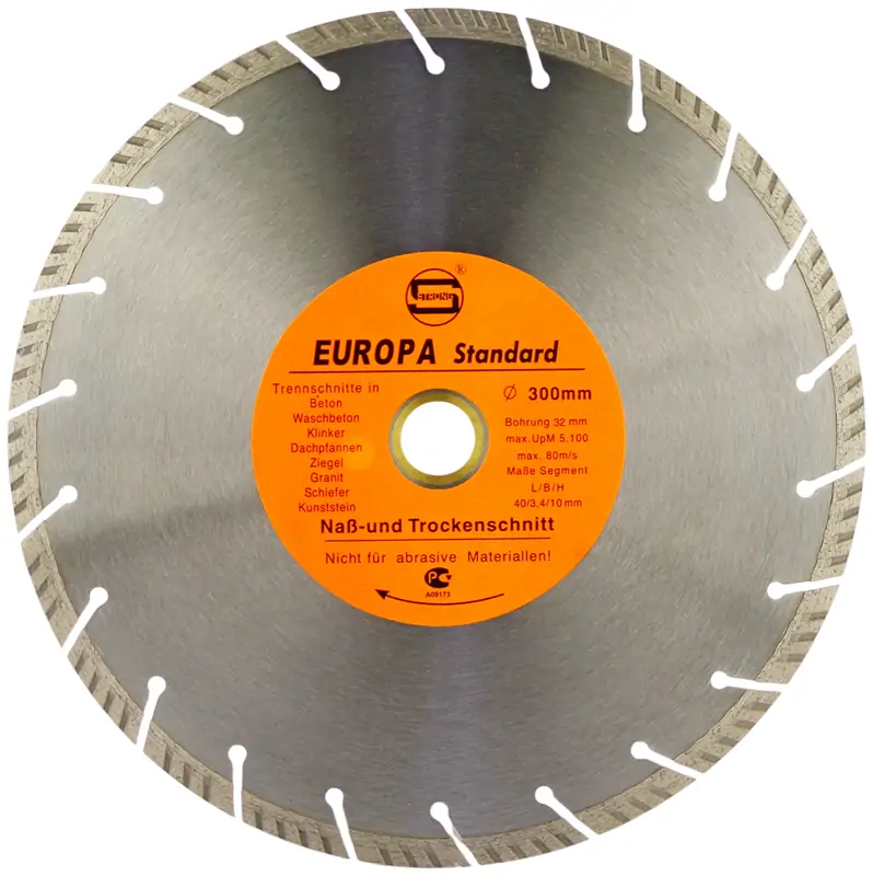 - Сегментированный. Разделён по кромке широкими прорезями, снижающими температуру и отводящими пыль. Подходит для сухой резки, отличается высокой производительностью.